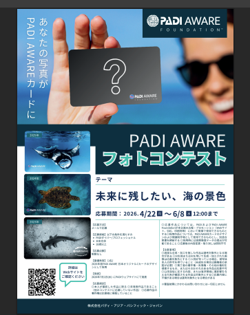 ども、おはこんばんちは✋ ご存じの方もいらっしゃると思いますが、 PADIではライセンスカード発行時に環境保全活動への寄付をすると 「特別」なライセンスカードが発行されます。 例年この時期にカードの写真が発 続きを読む
