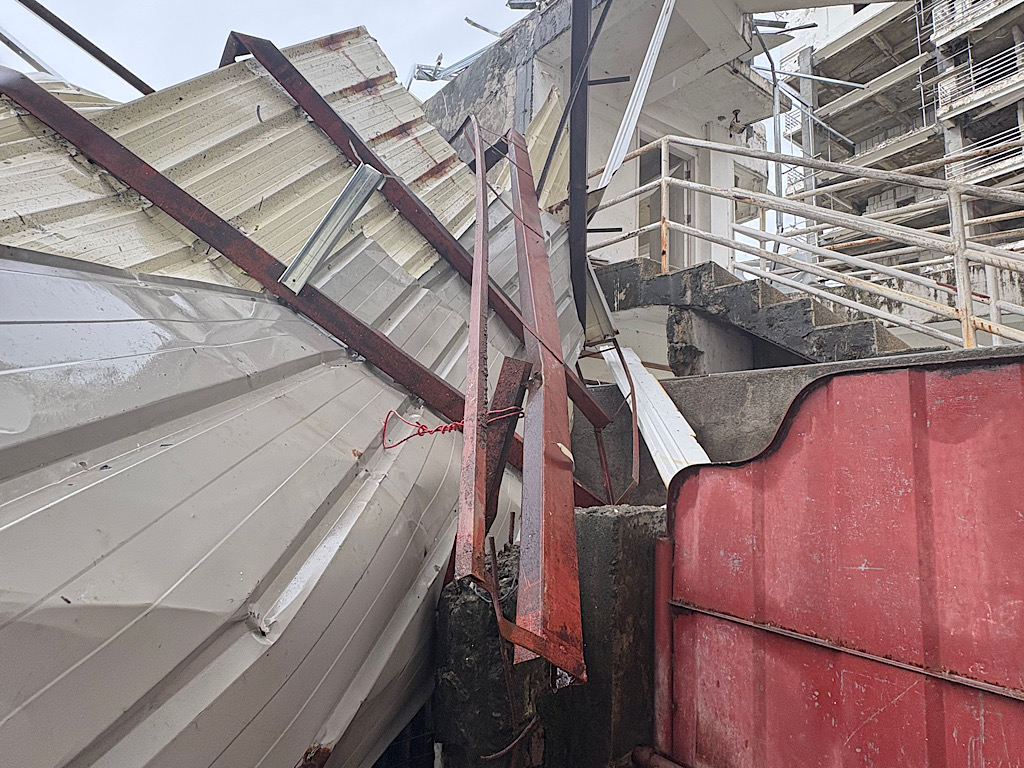お隣の3階建物が崩壊して倒れて