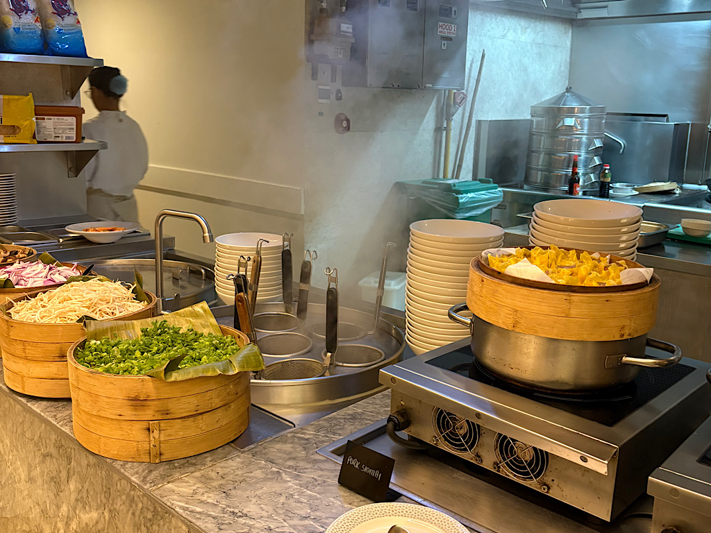 ヌードルスープやシュウマイと胡麻団子がありました