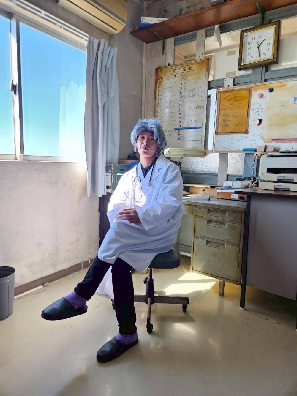 白衣とかつらが置いていたので試着してコトー先生になりきってみましたw