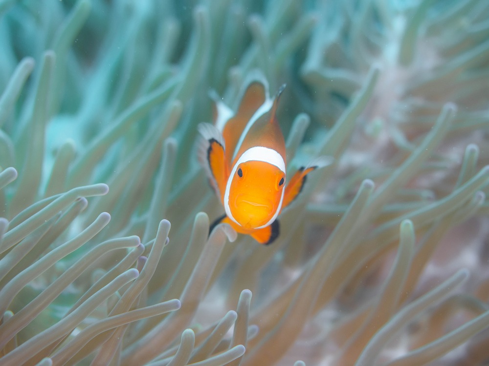 正面顔のハナビラクマノミ、可愛いやん![]()