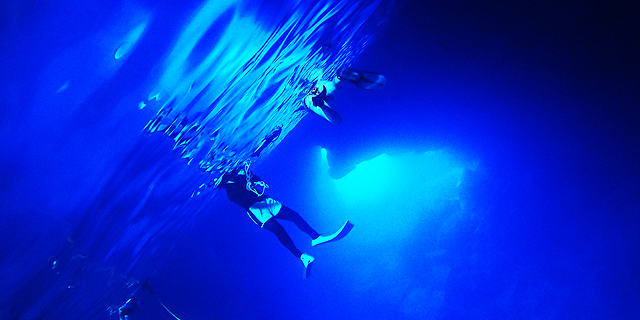 洞窟の内海にある岩に気を付けて渡ったらマスクとフィンを付けて準備完了。