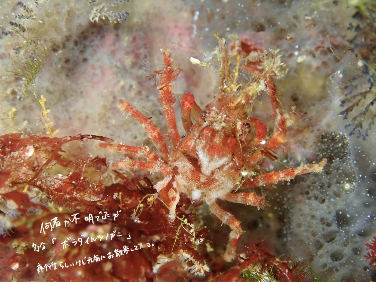 1人壁で見つけたカニは帰ってきて調べたら多分ボラダイルツノガニかな?