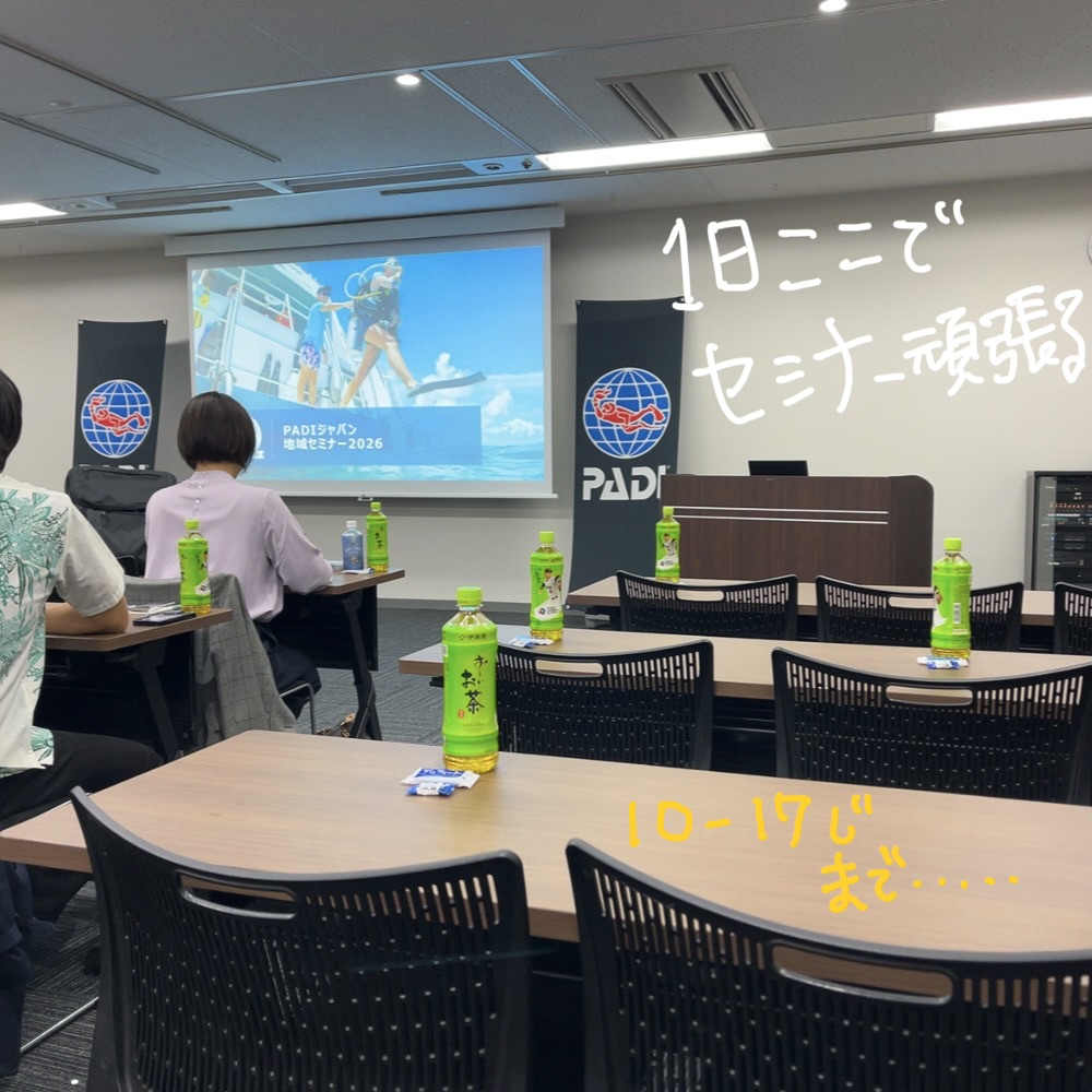 うだやん、めいとPADIのセミナーを朝から参加中![]()