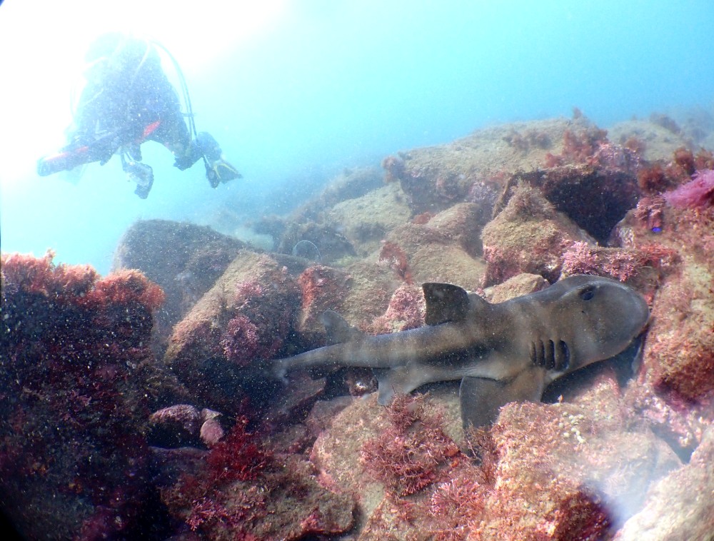 途中、大きなネコザメに遭遇![]()
