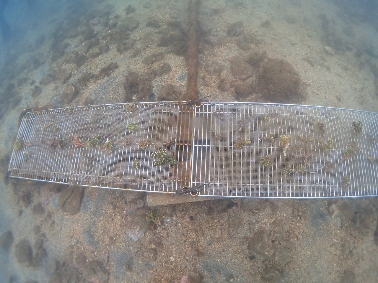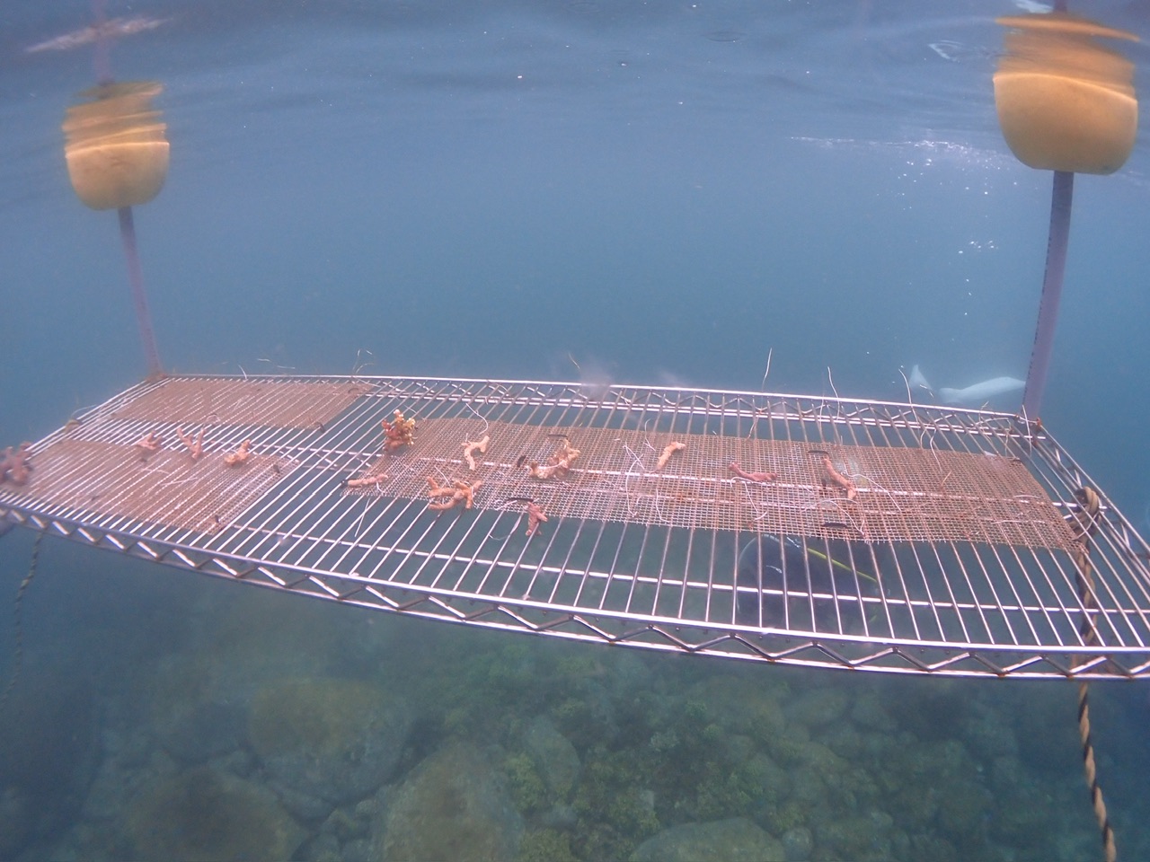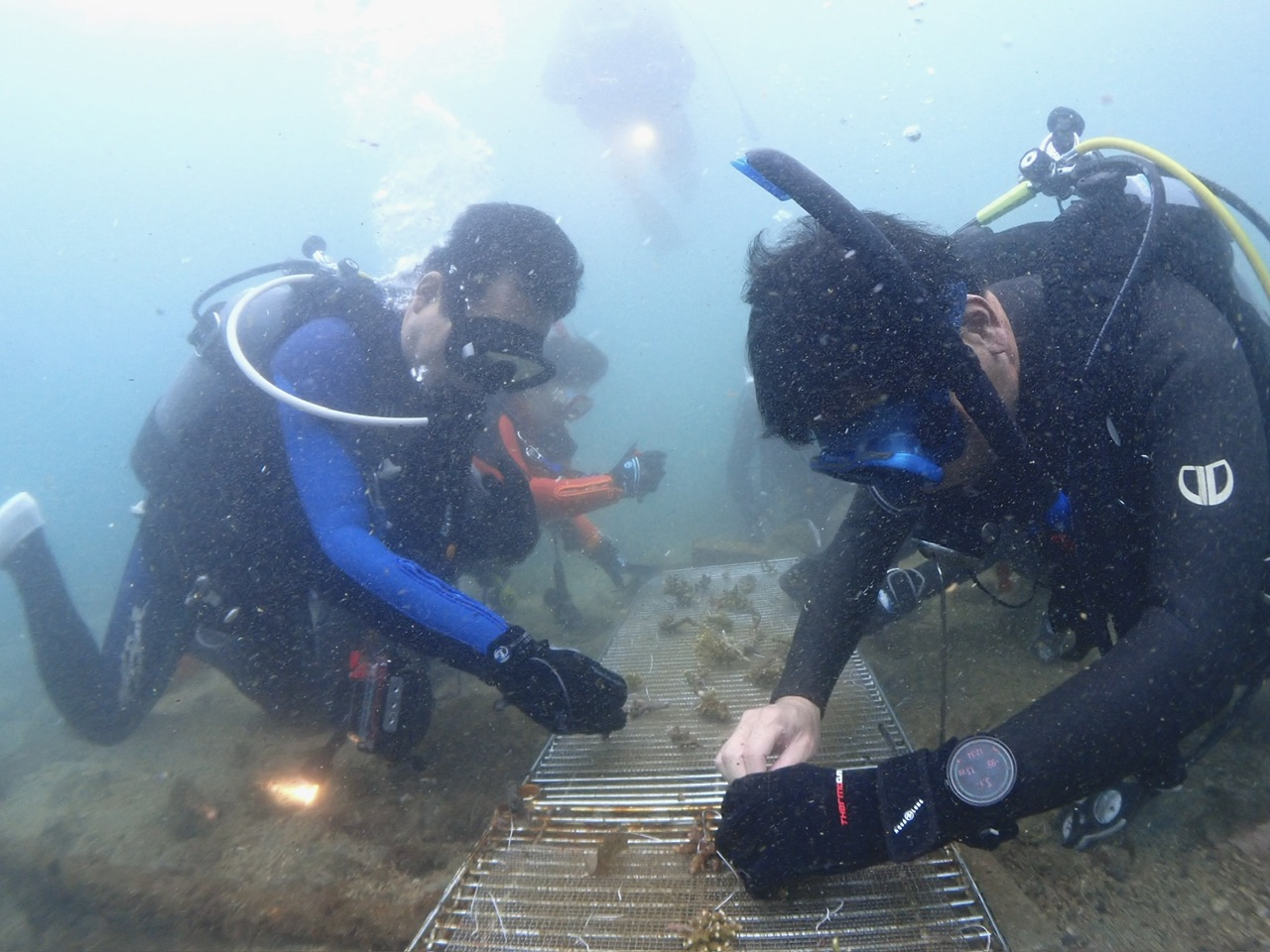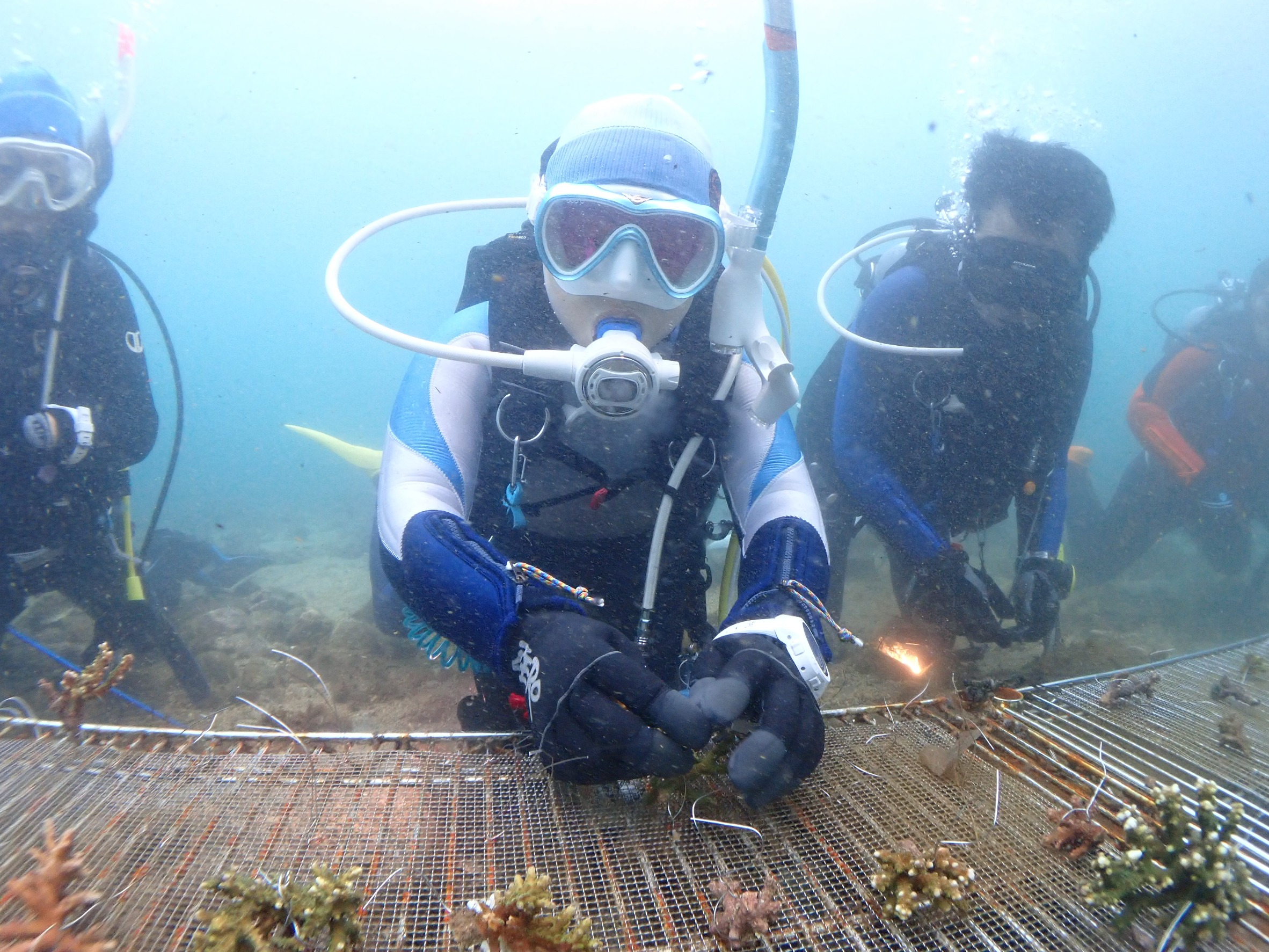 今回は水中で折れたサンゴを拾って🪸金網につけて行く感じ。