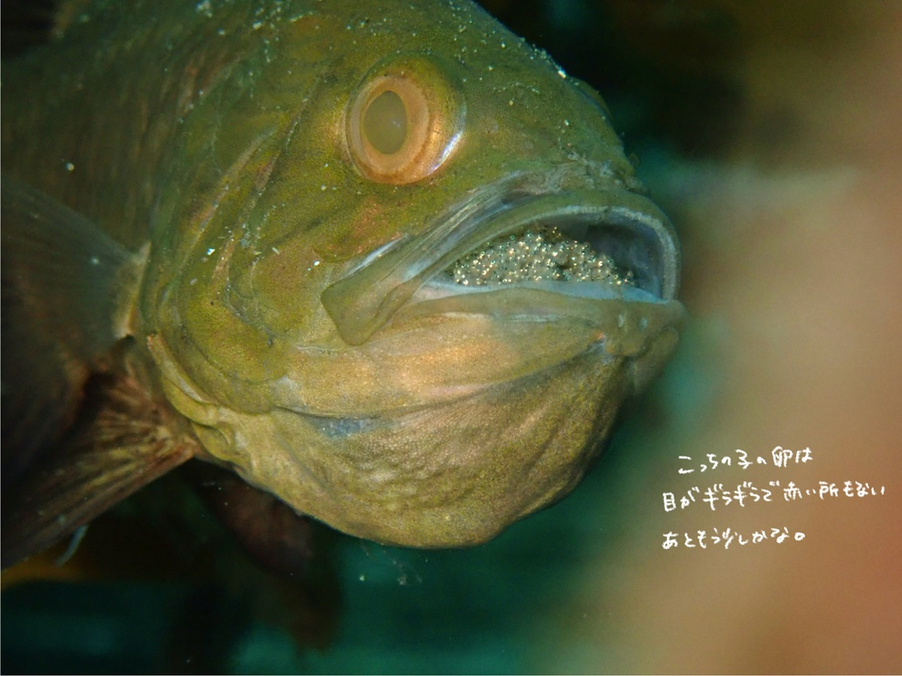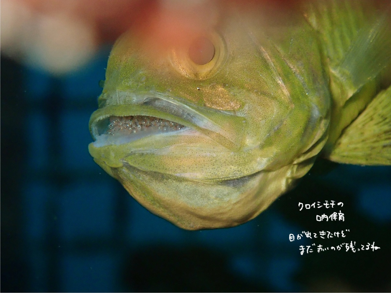 カゴの中にはクロイシモチがたくさんいてみんな口内保育中!