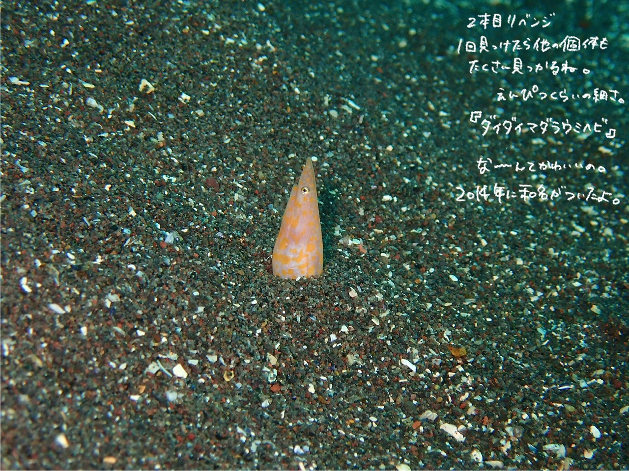 色々いたけど全然動かなくてズームないのにこんなに近いホタテウミヘビとか